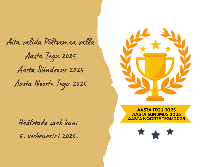 Põltsamaa Vallavalitsus kutsub kõiki osalema rahvahääletusel, et selgitada välja Põltsamaa valla Aasta tegu 2025, Aasta sündmus 2025 ja Aasta noorte tegu 2025.