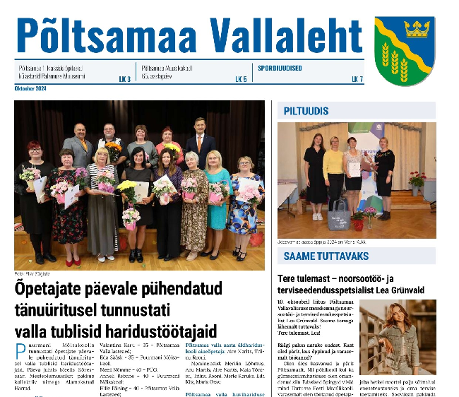 Laupäeval (26.10 - esimene kandepäev) ja teisipäeval (29.10 - teine kandepäev) jõuab Põltsamaa valla postkastidesse oktoobri vallaleht. 8-leheküljelisest infolehest leiab infot vallavalitsuse ja valla allasutuste tegemiste kohta. Lisaks paberlehele on lehte võimalik lugeda ka veebis.