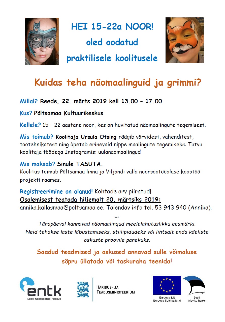 22. märts 2019 noorte koolitus „Kuidas teha näomaalinguid ja grimmi?"