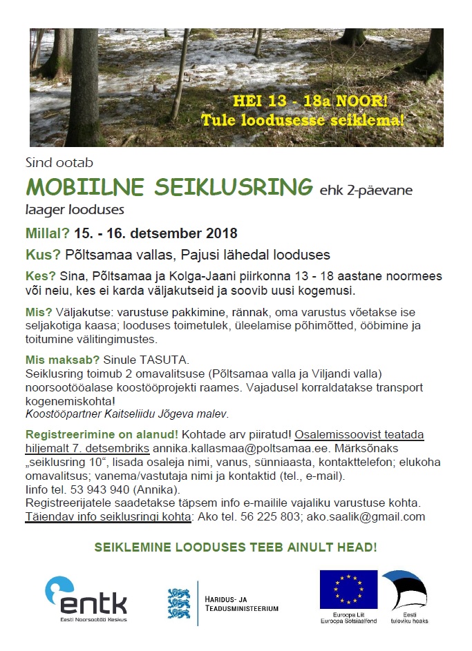 Seiklusringid toimuvad piirkonna erinevates kohtades ja peamiselt välitingimustes. Seiklusringides arendatakse noorte sotsiaalseid ja emotsionaalseid eluks vajalikke oskusi ning looduses toimetulemist.