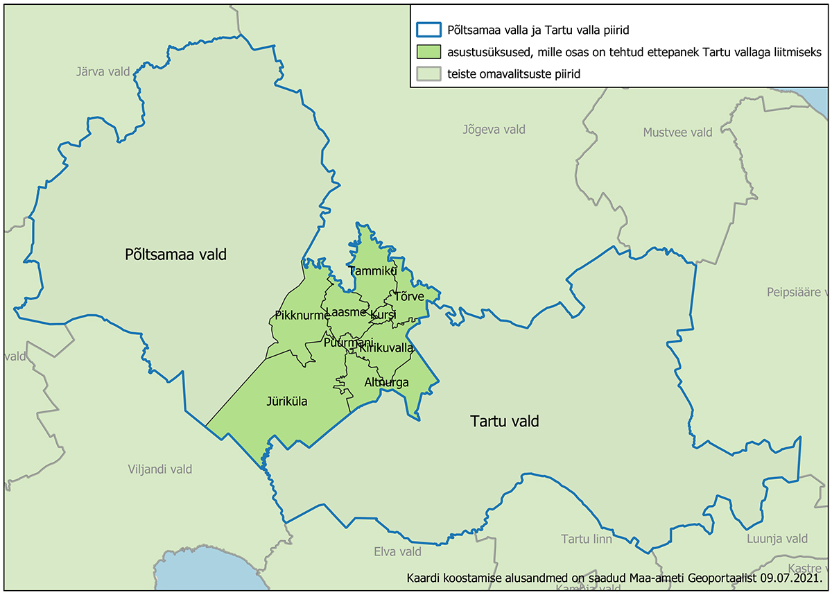 - Tartu Vallavolikogu arutas Põltsamaa Vallavolikogu ettepanekut 24. novembril 2021 ja nõustus menetluse alustamisega.