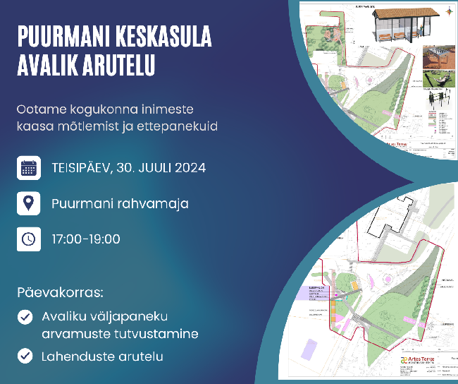 30.07 kell 17.00 toimub Puurmani rahvamajas Puurmani keskasula avaliku väljapaneku avalik arutelu. Ootame kogukonna inimesi kaasa mõtlema, et leida parimad lahendused.