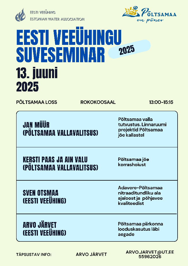 Eesti Veeühingu suveseminar toimub 13. juunil Põltsamaal