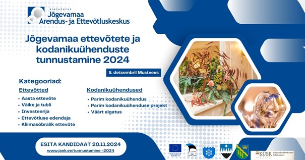Kutsume Teid taaskord märkama ja tunnustama Jõgevamaa tublisid ettevõtteid ja kodanikuühendusi nende panuse eest kodukoha arengusse.