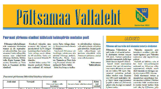 Täna ja homme jõuab Põltsamaa valla postkastidesse septembrikuu vallaleht. 4-leheküljelisest infolehest leiab infot vallavalitsuse ja valla allasutuste tegemiste kohta. Lisaks paberlehele on lehte võimalik lugeda ka veebis.
