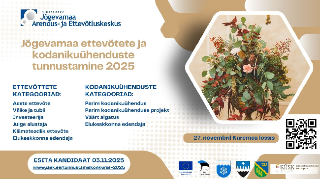 Jõgevamaa Arendus- ja Ettevõtluskeskus ootab kandidaate 2025. aasta parimate ettevõtete ja kodanikuühenduste tunnustamiskonkursile