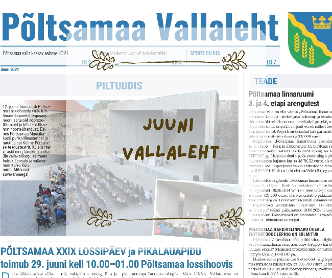 Ilmus Põltsamaa valla juuni vallaleht. 8-leheküljelisest infolehest leiab infot vallavalitsuse ja valla allasutuste tegemiste kohta. Lisaks paberlehele on lehte võimalik lugeda ka veebis.