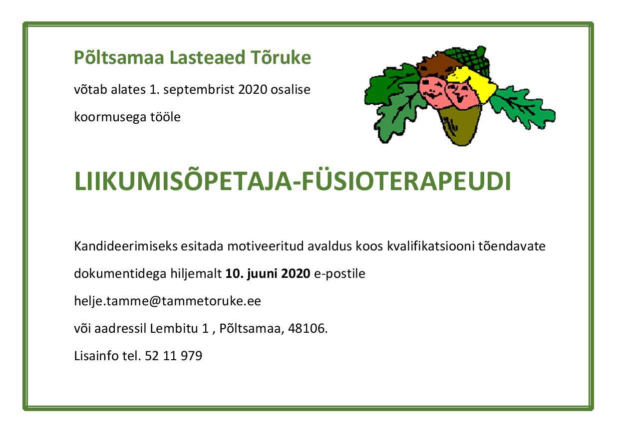 Põltsamaa Tõruke võtab tööle liikumisõpetaja-füsioterapeudi