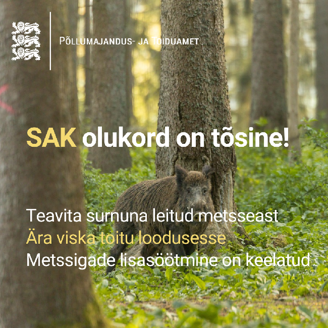 Põltsamaa vallas on tuvastatud Aafrika seakatku kiire levik. Kuigi haigus inimestele ohtu ei kujuta, on see väga ohtlik nii metssigadele kui ka kodusigadele. Palume kõigil olla tähelepanelikud ja...